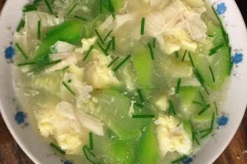 (2)水烧开,放入丝瓜,鸡蛋煮开,乘入碗中,撒上葱花即可。