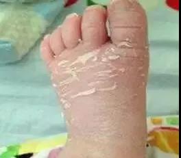 刚出生的婴儿皮肤最表面的角质层太薄,表皮和真皮之间连接得也不紧密,往往表现出脚踝,脚底及手腕部皮肤干而粗糙,发生脱皮现象、通常在第8天最严重,随后逐渐减轻。