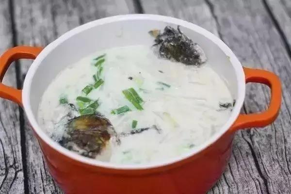 3、当汤汁色彩呈奶白色时下入冬瓜,调味稍煮即可。