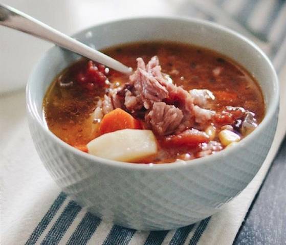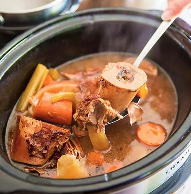 先放骨头,再倒入冷水,水一次性加够,慢慢煮开后加点醋,可以让骨头中的钙质溶解到汤里面,中火炖煮3小时。