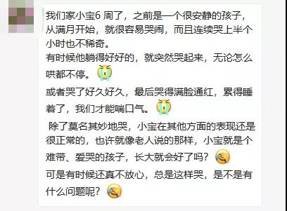 在宝宝出生2-4周天左右的时候,宝妈和姐姐们会发现宝宝开始出现规律性的痛哭。宝宝不会说话表达不满,身体如果有些不舒服就会用哭声以示抗议。