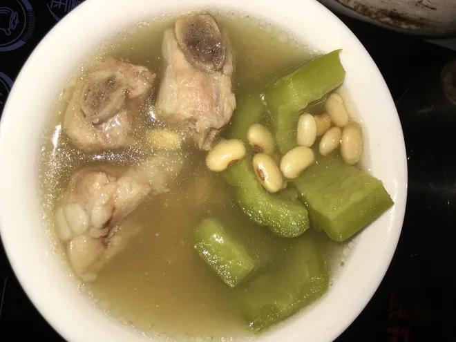 食材:凉瓜(即苦瓜)300克,黄豆100克,排骨一根。