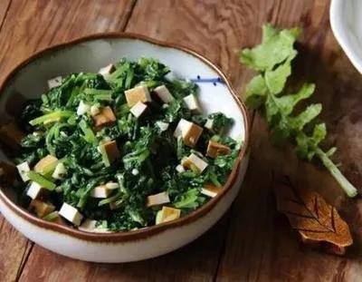 食材:萝卜缨,香干,姜,食盐,芝麻油,白糖。