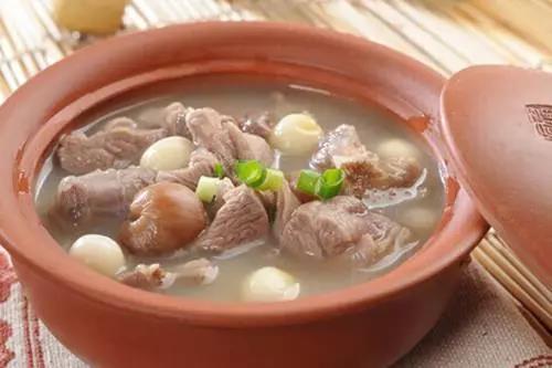 4)、把羊肉、山药、莲藕放入砂锅内,加黄酒、黄芪汁、水,同煮两个小时后至肉烂,加少许盐调味,产妇吃肉喝汤。