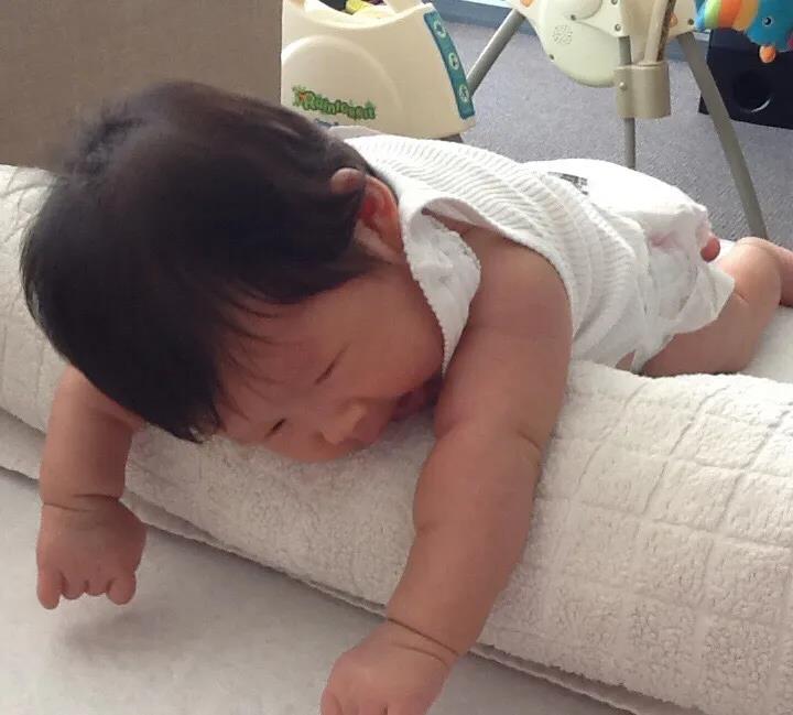 当宝宝长到4个月的时候,颈部和头部肌肉开始变强壮,宝宝开始慢慢学会用胳膊撑起身体,使胸部离开地面,这动作有点像做俯卧撑。