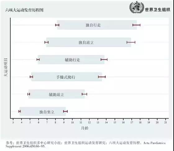 最后,附上世界卫生组织公布的《婴幼儿大运动发育时间表》,供姐妹们参考。