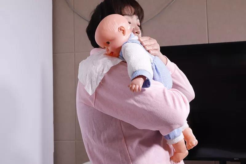 让宝宝的胸部和头部的重量落在我们的肩膀和手臂上,就像上图一样,要托好脖子和屁股,用空心掌轻拍宝宝后背。