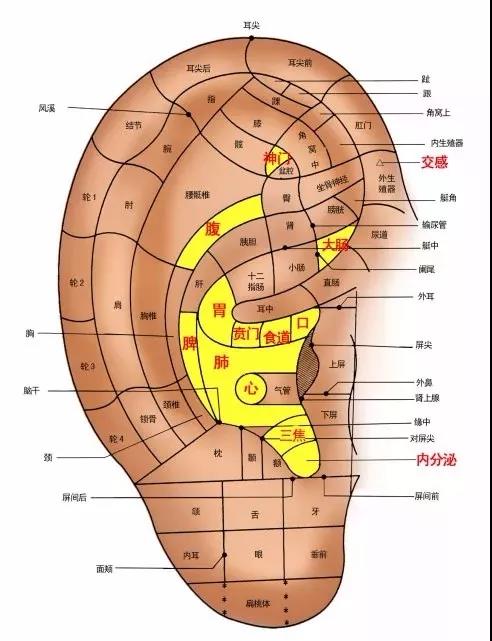 中医上面有记载,在小小的耳朵上,分布着91个穴位,全身器官组织在这里都有特定的反射区。(据《耳穴名称与部位的国家标准方案》)