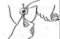 b、两大拇指放在乳头左右两侧,慢慢向外拉;