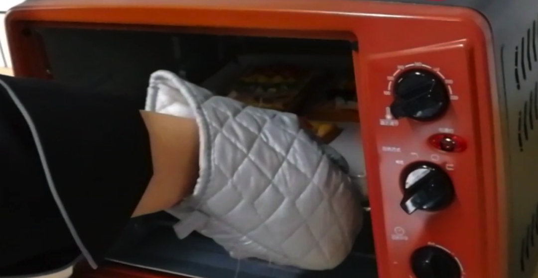 接下来,把我们的披萨放入烤箱,烤10分钟。