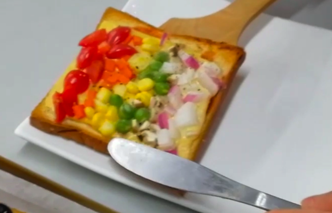 美味又营养的彩虹吐丝披萨就完成啦。姐姐们学会了吗?