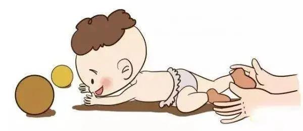 匍行:用玩具逗引帮助宝宝练习匍行,大人可把手放在宝宝的脚底,帮助他向前匍行,以后逐渐用手或毛巾提起腹部,让身体重量落在手和膝上,以便向前匍行。