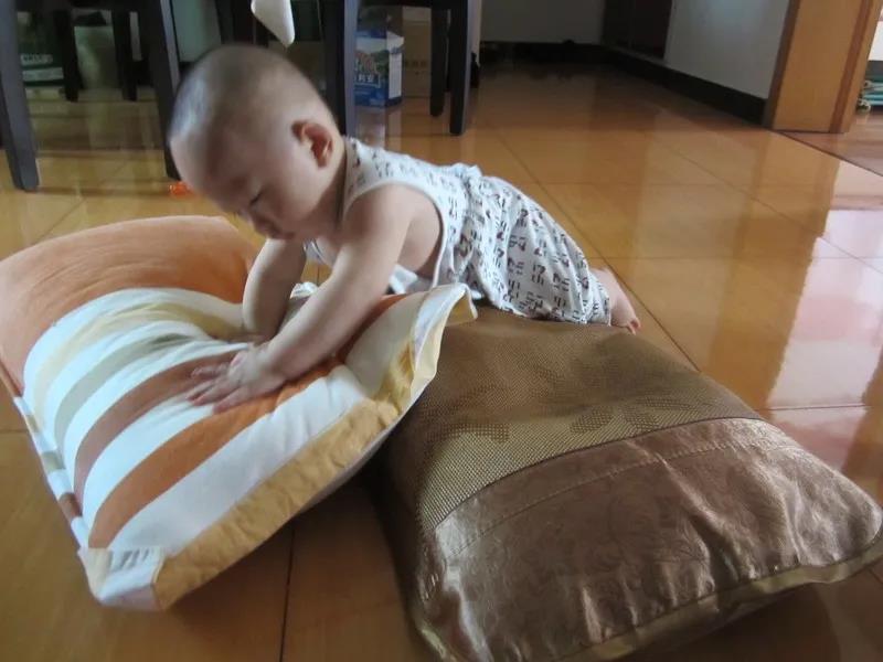 这种动作要经常练习,基本上到第7个月才能翻滚。经常翻滚有助于宝宝肌肉关节和左右脑的统合能力的发展。