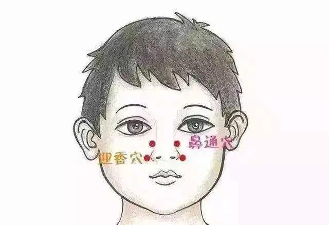 常见的穴位:天庭穴 、印堂穴、鼻通穴、迎香穴按揉。