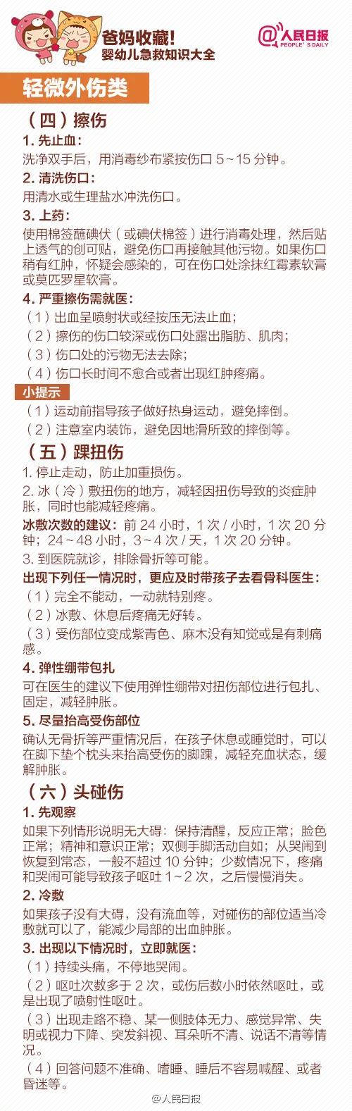 立即用冷水(或自来水)帮宝宝持续冲伤口10分钟以上,直到疼痛感明显减轻,甚至消失。