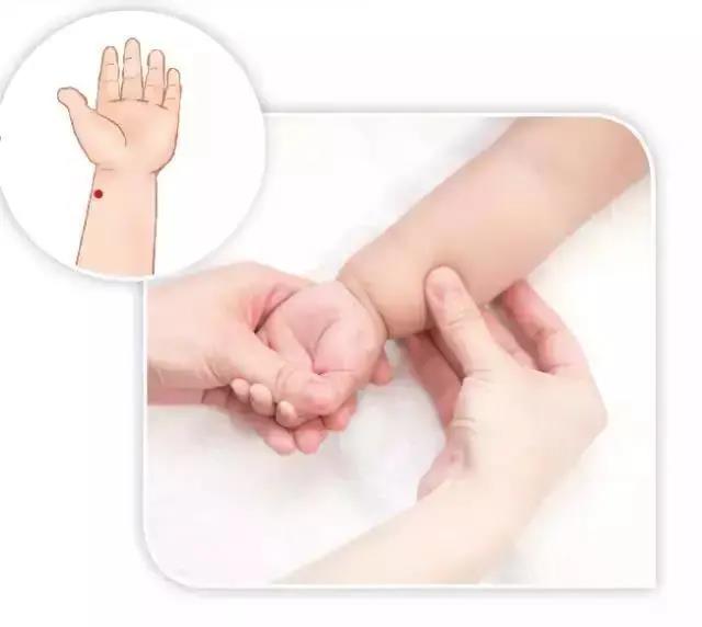 操作方法:用拇指按揉宝宝手腕两侧的列缺穴各2分钟。
