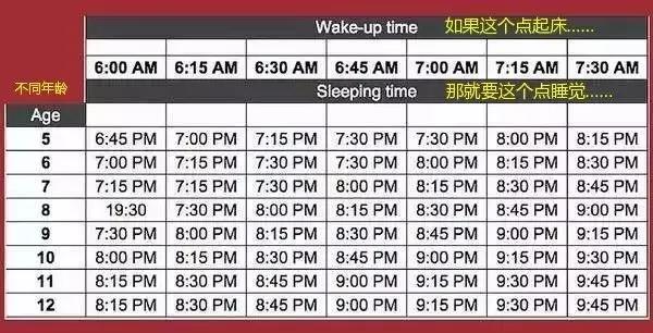 不同年龄的孩子,如果在某个时间起床时间,那么他也要在对应的某个时间睡觉。