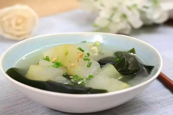 功效:海带有非常好的软坚散结的作用,尤其乳腺增生的妈妈们可以多食用;配合利水的冬瓜,清热去火的效果更佳。