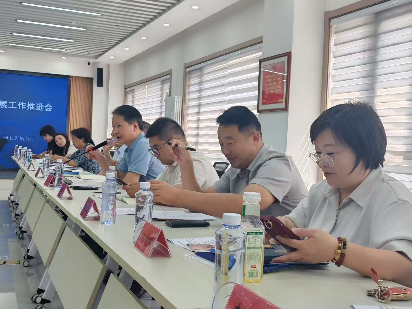 参会人员:省商务厅二级巡视员杨志兵,京津冀商务主管处室同志,雄安新区商