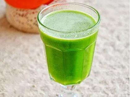 3)、将菠菜、苹果、红萝卜加适量热水放入榨汁机榨汁,挤入少许柠檬和冰糖,搅匀即可饮用。
