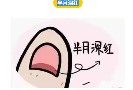 宝宝指甲出现这种情况需要特别注意:甲半月出现深红色,多是心脏病的征兆;而淡红色多是贫血导致。