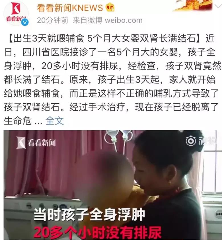 原来,孩子出生仅3天,家长就开始喂食辅食,这样不正确的喂养方式,是孩子出现肾结石的重要原因之一!
