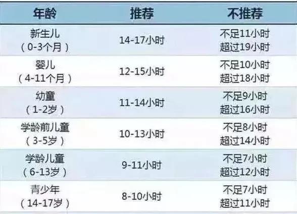 不同年龄的孩子,如果在某个时间起床时间,那么他也要在对应的某个时间睡觉。