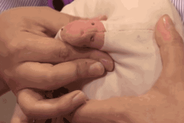 1.开始时,大拇指在上,食指在下对着大拇指放在靠近乳晕处,其他的手指托住乳房,呈字母C的形状。以拿杯子的手形握住乳房,将手指放在如同宝宝直接吸奶时嘴唇放的位置。