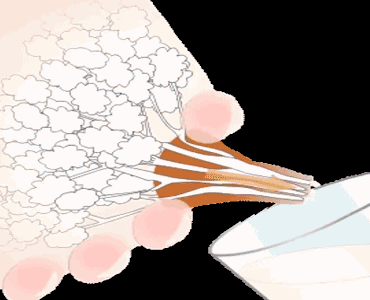 3、再用梳法从乳房基底部向乳头方向施以梳法约1分钟。