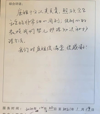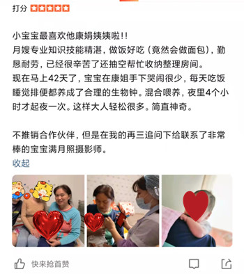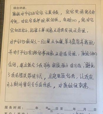 来自月嫂工作日志客户真实好评