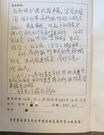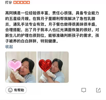 来自月嫂日志客户真实好评