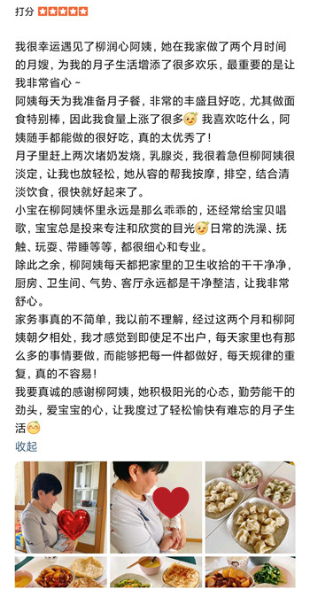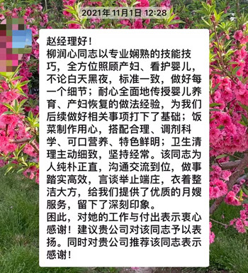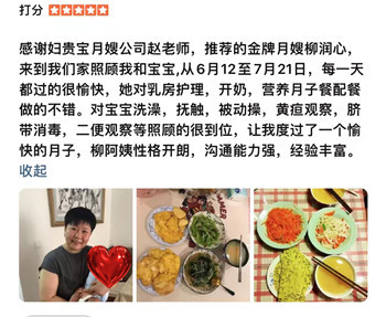 来自月嫂工作日志客户真实好评